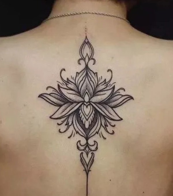 女生后背脊椎处超唯美的莲花梵花纹身图