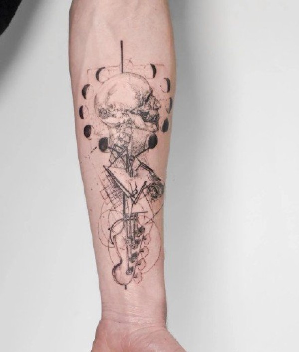 手臂上超好看的几何混搭纹身图