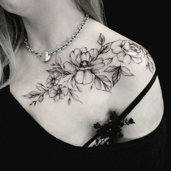 大臂素花纹身 9款女士的大臂黑灰花朵植物纹身图案
