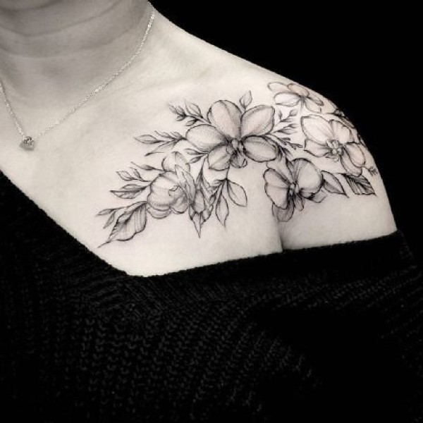 女孩子锁骨肩部的素花纹身图欣赏