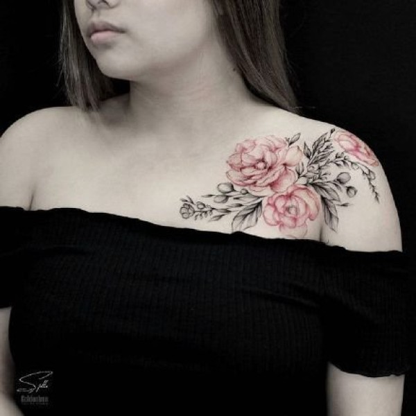 大臂素花纹身 9款女士的大臂黑灰花朵植物纹身图案