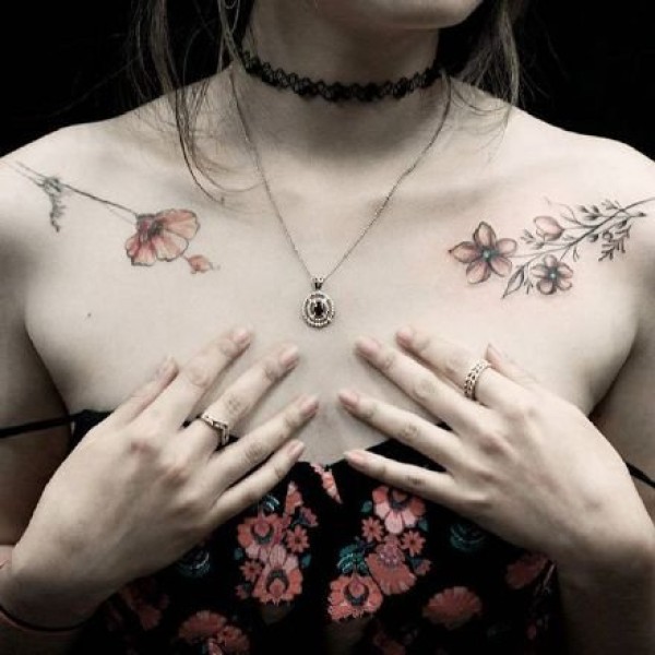 女生素花纹身 适合女孩子的小清新花朵线条纹身图案