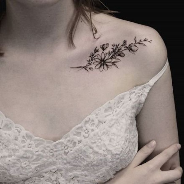 女生素花纹身 适合女孩子的小清新花朵线条纹身图案