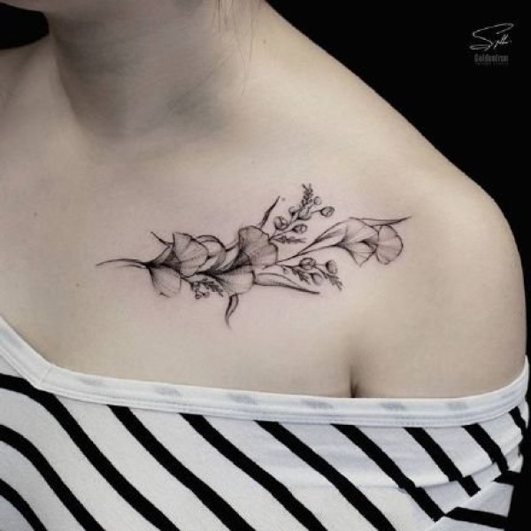 女孩子锁骨肩部的素花纹身图欣赏