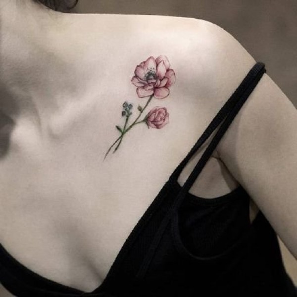 女生素花纹身 适合女孩子的小清新花朵线条纹身图案