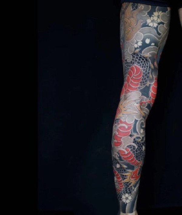 日式风格的传统花腿纹身作品欣赏