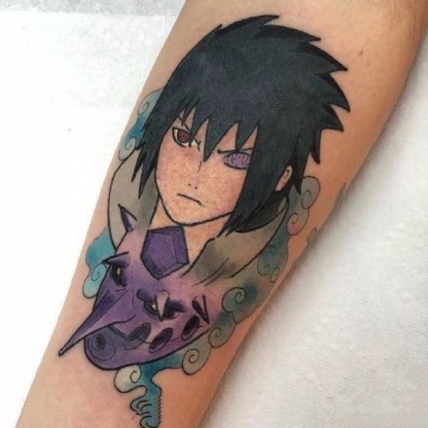 手臂上的火影忍者鸣人佐助卡卡西等角色动漫纹身图案