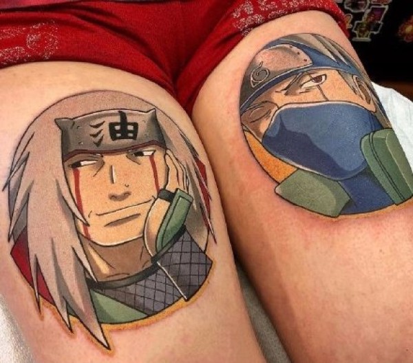 手臂上的火影忍者鸣人佐助卡卡西等角色动漫纹身图案