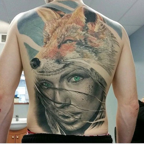 国外美女狐狸主题纹身图案