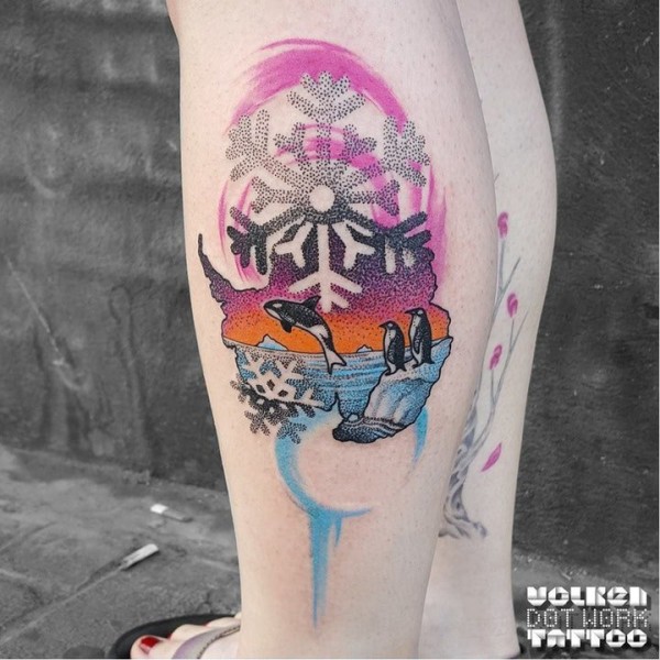 企鹅纹身图--一组彩色的星空企鹅主题的纹身图案作品