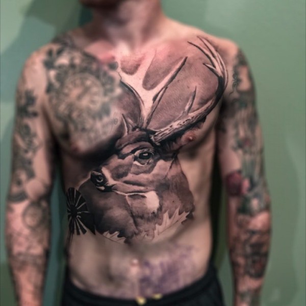 9张和鹿角鹿头相关的纹身图案作品欣赏