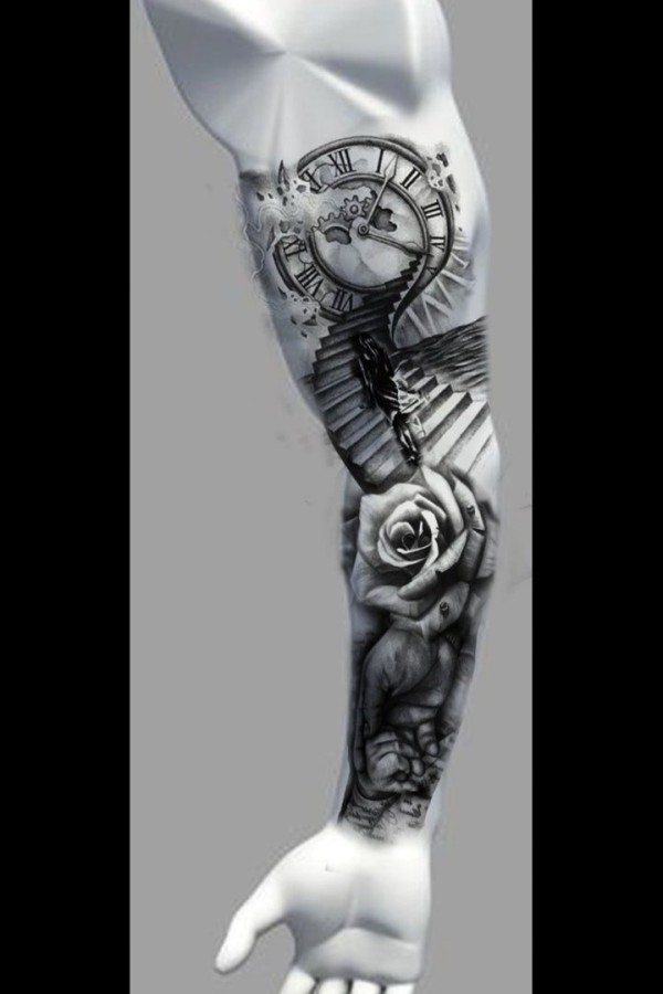 小臂钟表纹身 18款欧美风格包臂钟表纹身图案