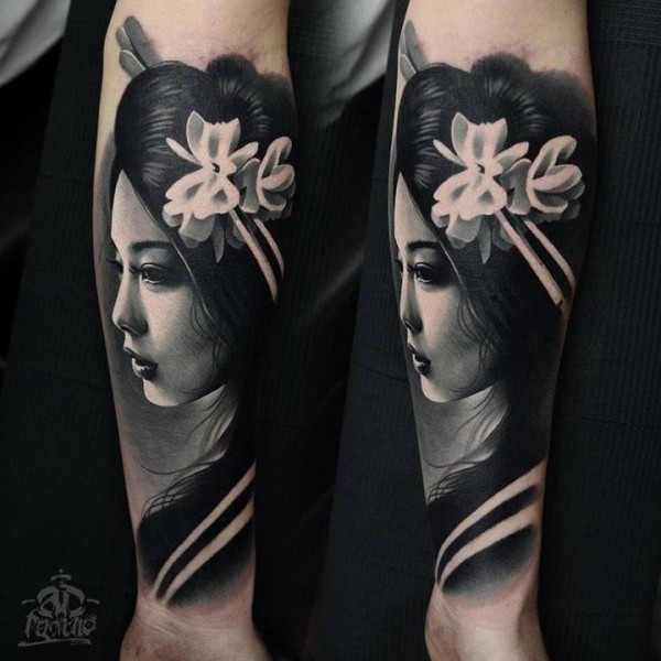 手臂艺伎:9张纹在胳膊上的花旦艺伎纹身图案