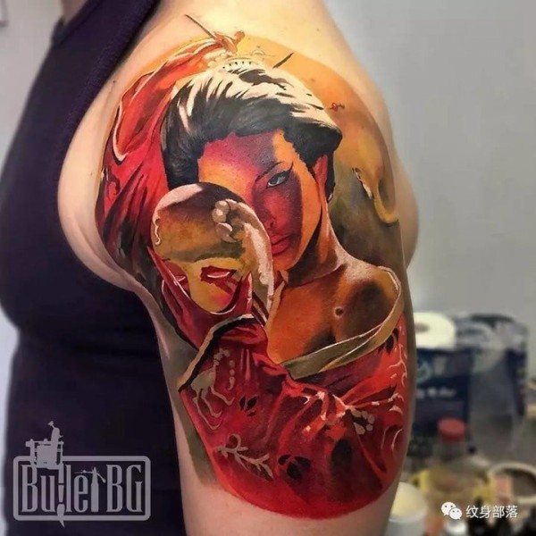 手臂艺伎:9张纹在胳膊上的花旦艺伎纹身图案