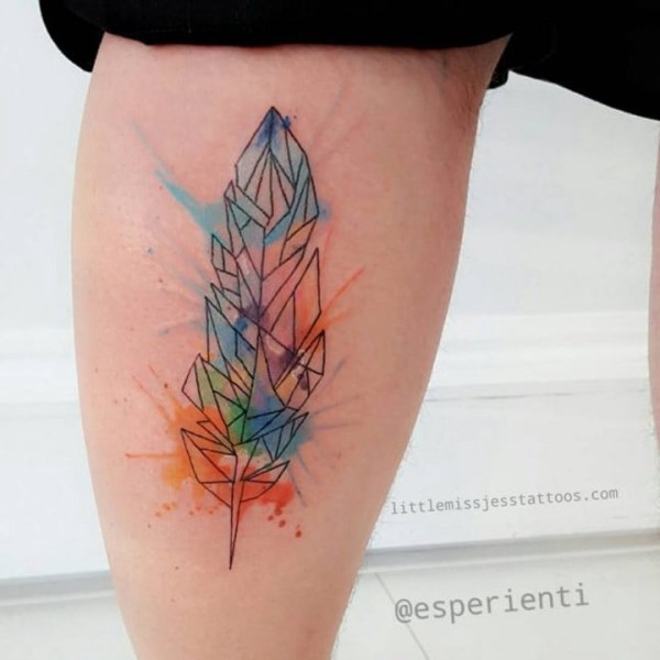 创意羽毛字母L小腿纹身图片