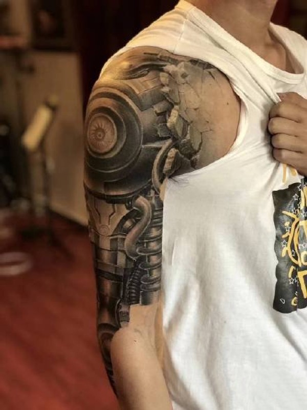 适合男性的机械3d手臂纹身图案