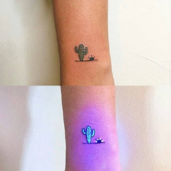 夜晚很漂亮的纹身图案搭配荧光纹身效果图欣赏