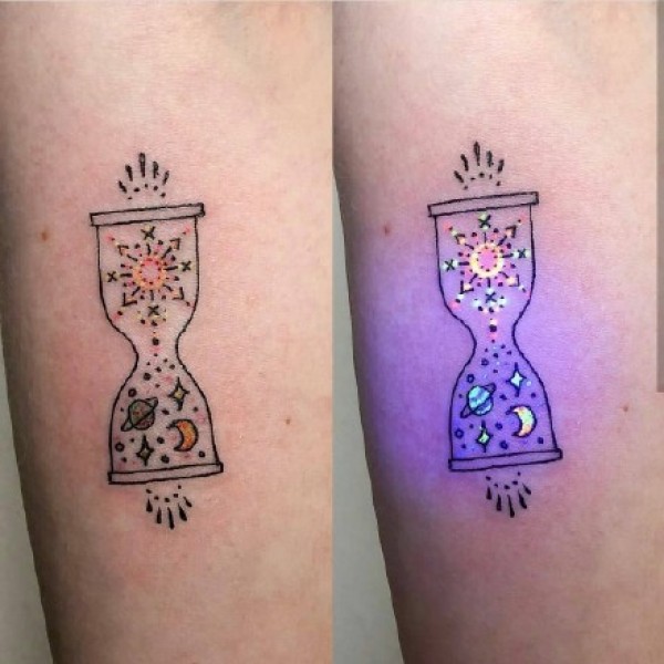 夜晚很漂亮的纹身图案搭配荧光纹身效果图欣赏