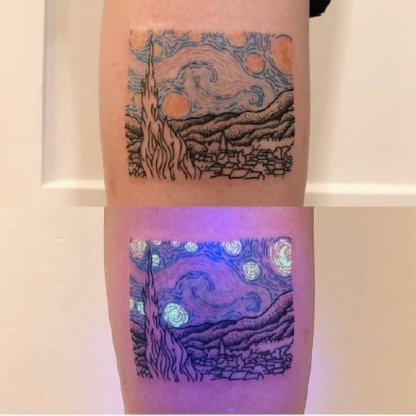 夜晚很漂亮的纹身图案搭配荧光纹身效果图欣赏