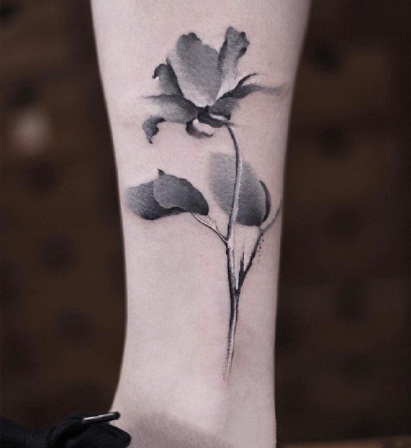 中国水墨风格的花卉植物纹身图案欣赏