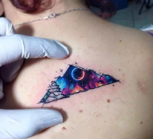彩色的超现实主义纹身水彩纹身立体图案