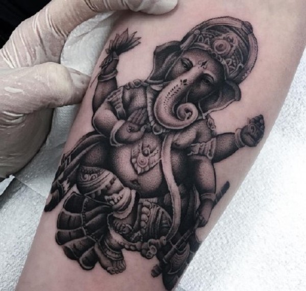 手臂黑灰象神_一组12张手臂上的黑灰象神纹身图案作品欣赏