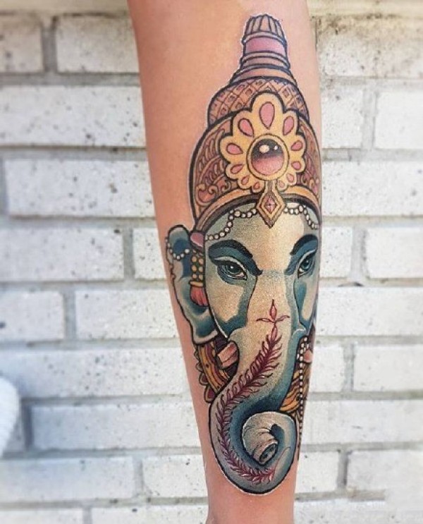 手臂黑灰象神_一组12张手臂上的黑灰象神纹身图案作品欣赏