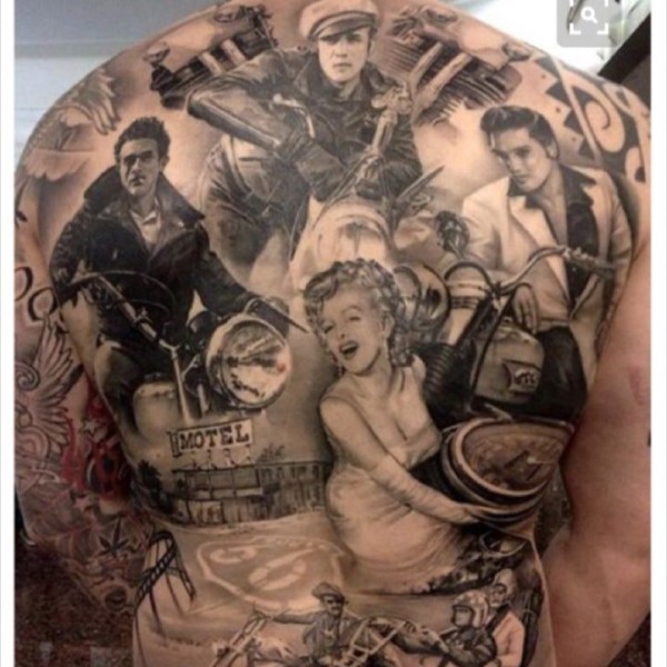 新传统风格的9张男性黑灰大满背纹身图案图片