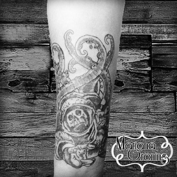 大章鱼骷髅头纹身图案手稿素材