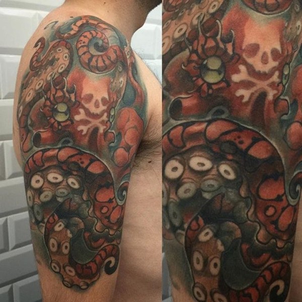 缠绕在肩膀上的漂亮章鱼纹身图案