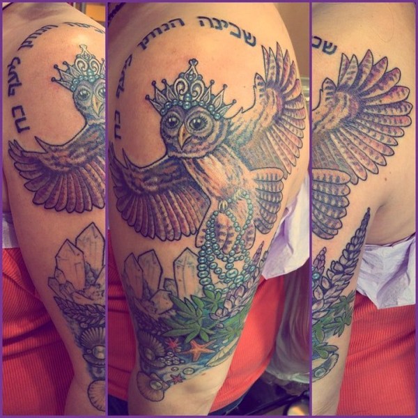 鹰纹身--一组彩色的猫头鹰等鹰纹身作品欣赏