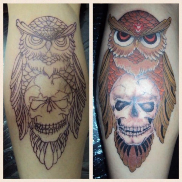 鹰纹身--一组彩色的猫头鹰等鹰纹身作品欣赏