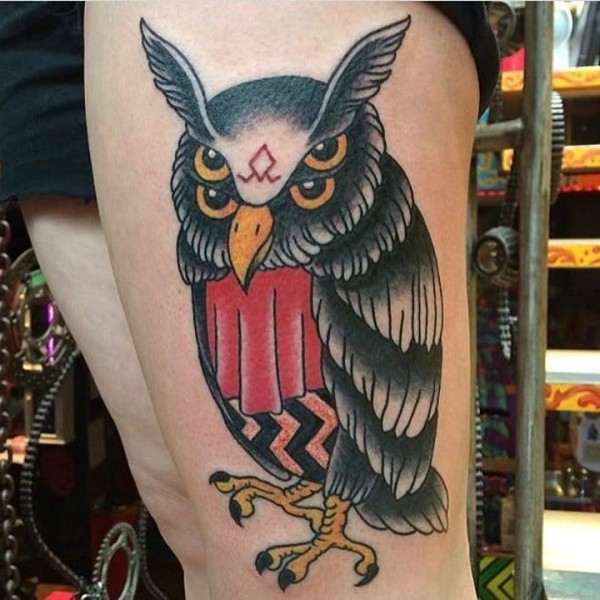鹰纹身--一组彩色的猫头鹰等鹰纹身作品欣赏