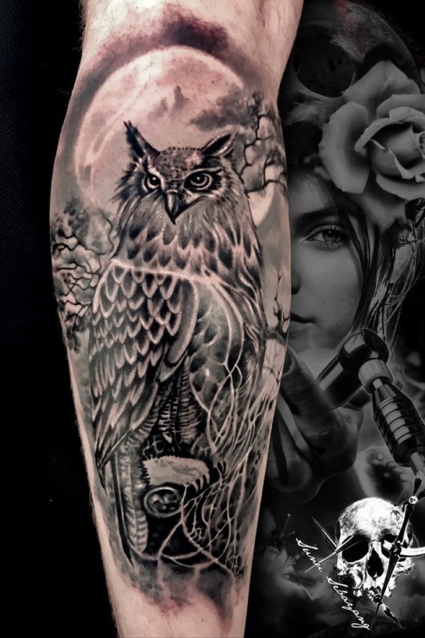 纹身猫头鹰 8款昼伏夜出的猫头鹰纹身图案