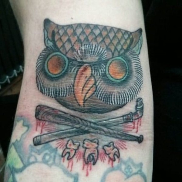 胳膊一张创意猫头鹰文身作品