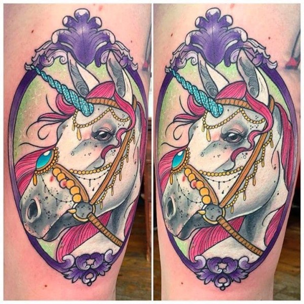 独角兽刺青:好看的一组独角兽纹身图案9张