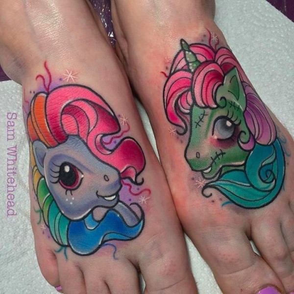 彩色独角兽:一组和独角兽相关的小彩色纹身图案作品