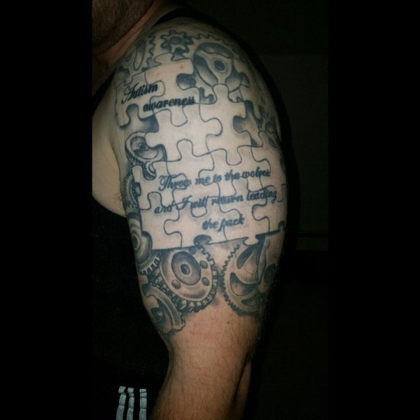 大臂纹身图 男生大臂上黑色的齿轮纹身图片