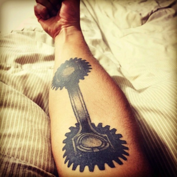 齿轮纹身 男生手臂上黑色的齿轮纹身图片