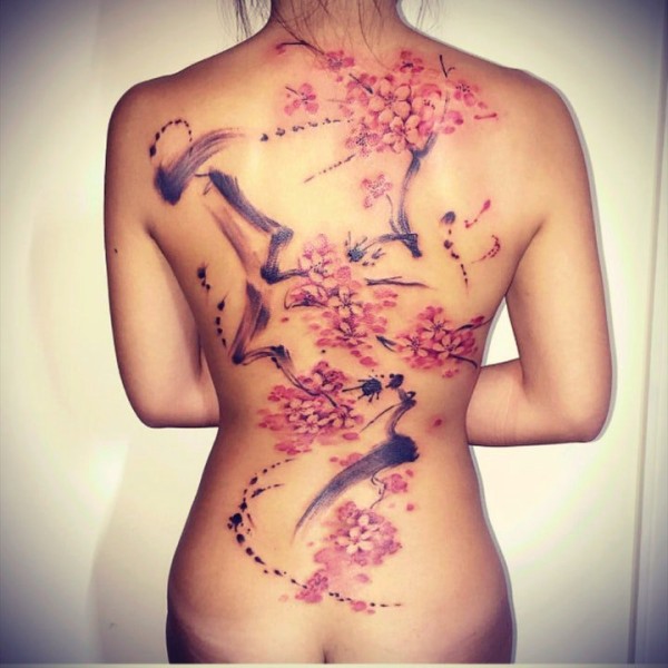 纹身图案花朵 适合女人漂亮的彩色的小花朵纹身图案