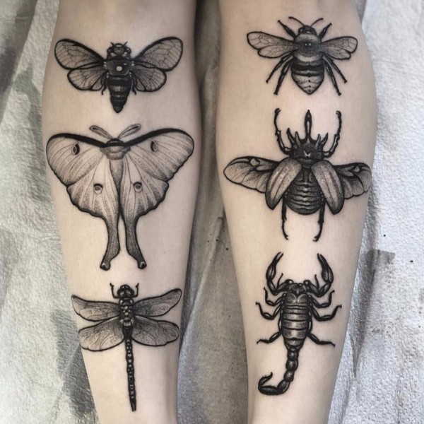 一组彩色昆虫动物系列的school纹身图案欣赏