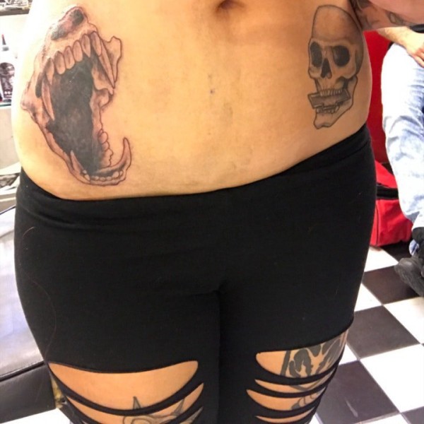 侧腰女骷髅刺青图案图片_骷髅纹身图案大全_纹身图吧