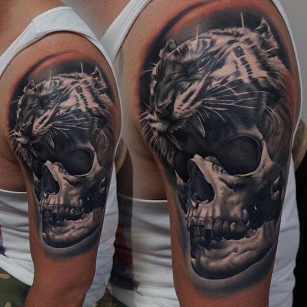霸气半胛老虎纹身_动物纹身图案大全_纹身图吧