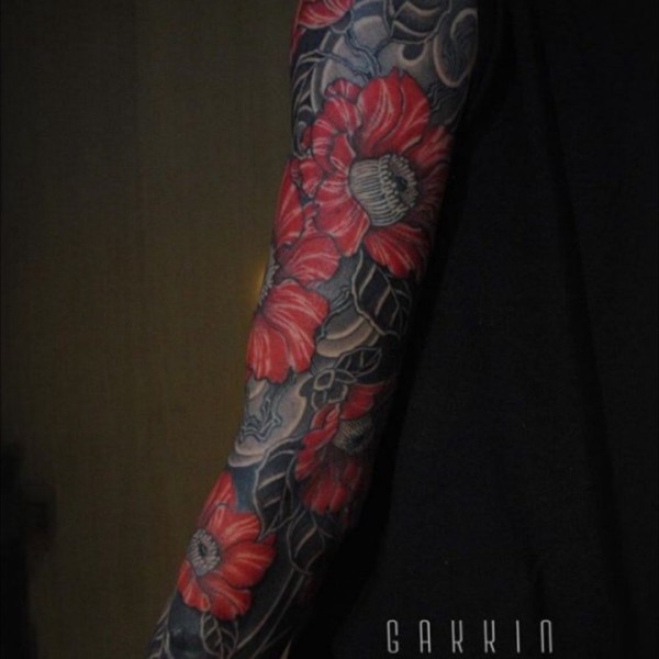 纹身红色花 娇艳而又色彩绚丽的红色花朵纹身图案
