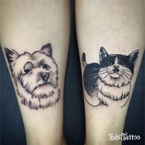 潮流纹身-色彩可爱的小猫小狗手臂纹身图片