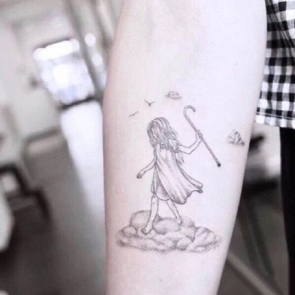 手臂插画纹身_9张黑灰手臂上的插画纹身图案作品图片