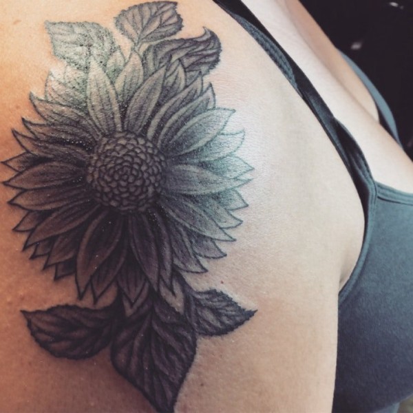 向日葵纹身图案 绽放中的或黑灰或彩绘的向日葵纹身图案