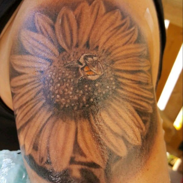 向日葵纹身图案 绽放中的或黑灰或彩绘的向日葵纹身图案
