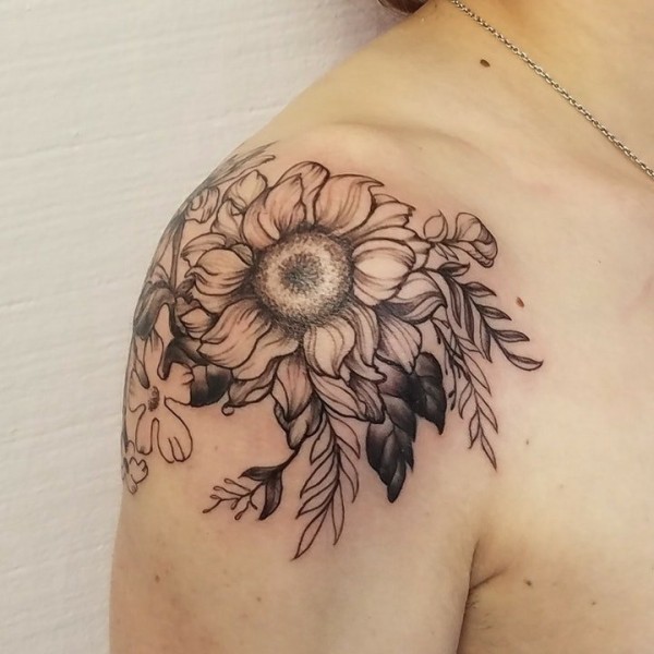 向日葵纹身图案 绽放中的或黑灰或彩绘的向日葵纹身图案