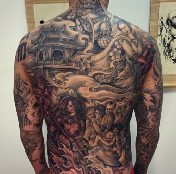霸气的新传统大满背纹身作品图